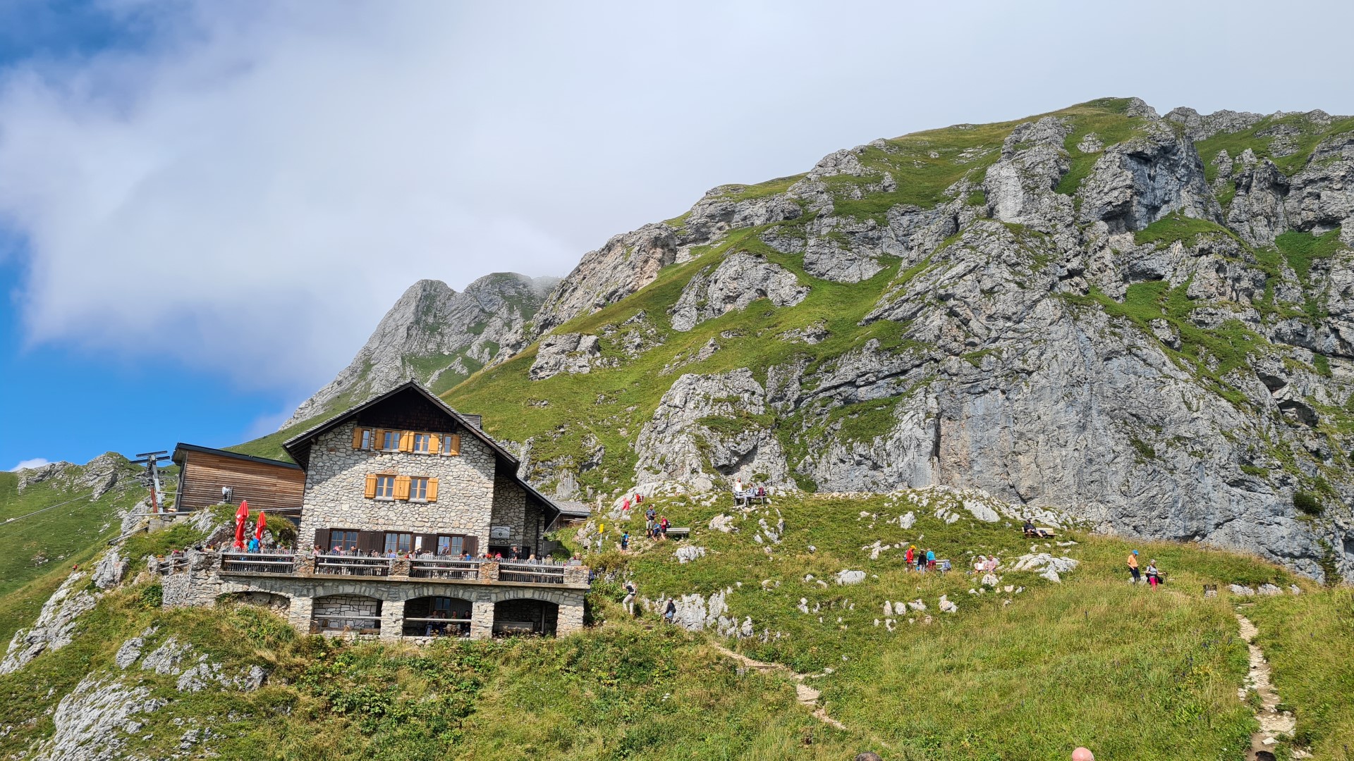 Das Wetter eher bescheiden. Grad mal 11 ° auf dem Berg, dazu wolkenverhangene Gipfel. Nicht das ideale Bergwetter für Landziegen, aber was solls, ab auf den Berg!